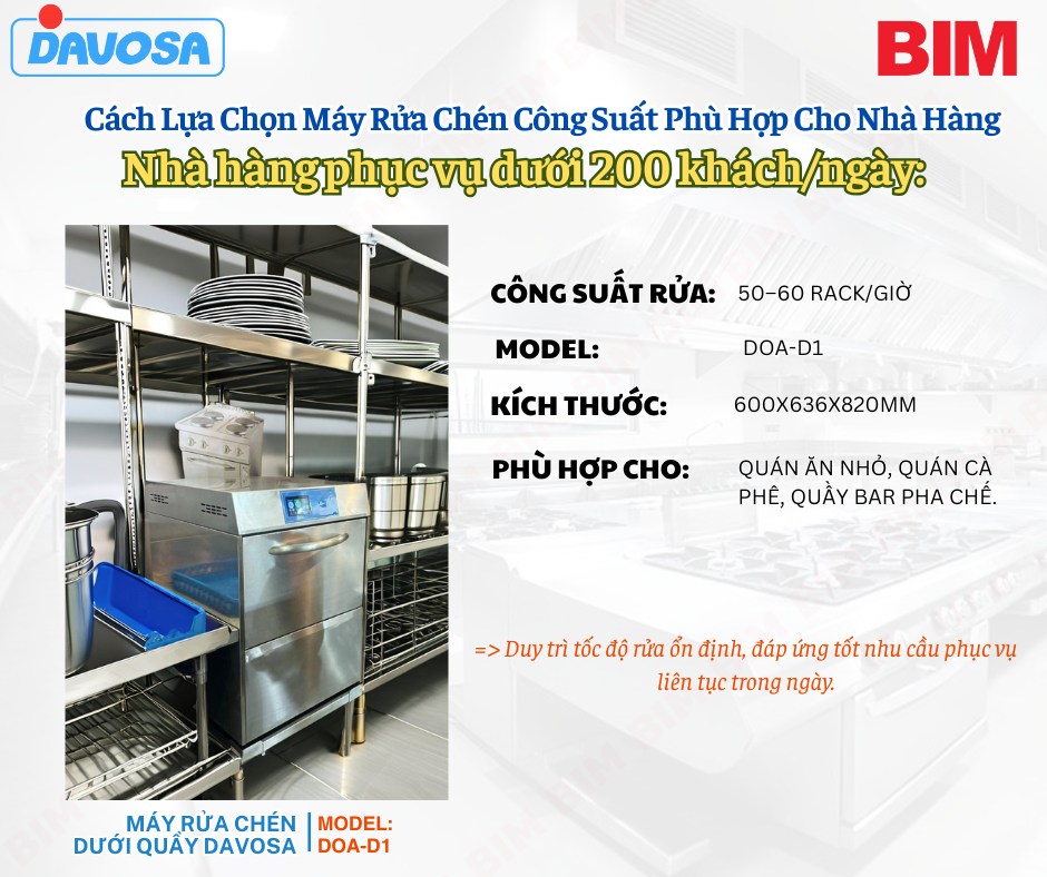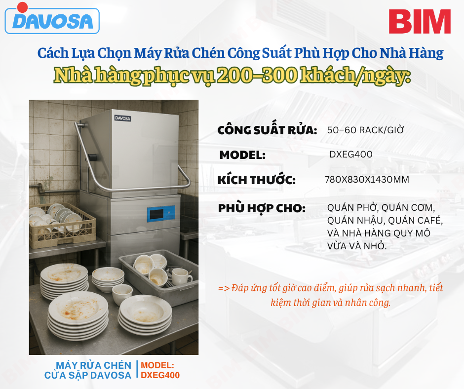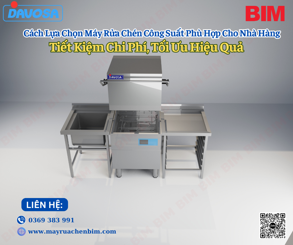 Lựa chọn máy rửa chén công nghiệp có công suất phù hợp là yếu tố then chốt quyết định hiệu quả vận hành của nhà hàng, quán ăn. Nếu chọn máy công suất quá lớn sẽ làm tăng chi phí đầu tư và giảm lợi nhuận kinh doanh, trong khi máy quá nhỏ dễ gây quá tải vào giờ cao điểm. Cùng BIM tìm hiểu cách chọn máy rửa chén đúng công suất để tiết kiệm chi phí và tối ưu hiệu suất rửa sạch cho mọi mô hình nhà hàng.