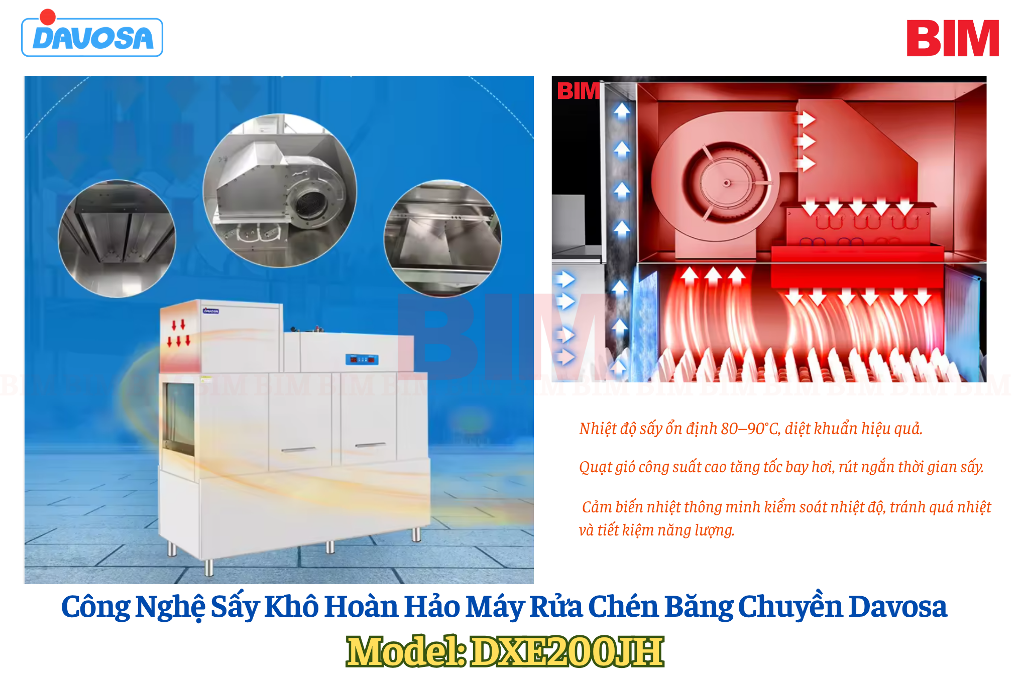 Công Nghệ Sấy Khô Hoàn Hảo Máy Rửa Chén Băng Chuyền Davosa DXE200JH – Chén Đĩa Khô Sạch Tức Thì